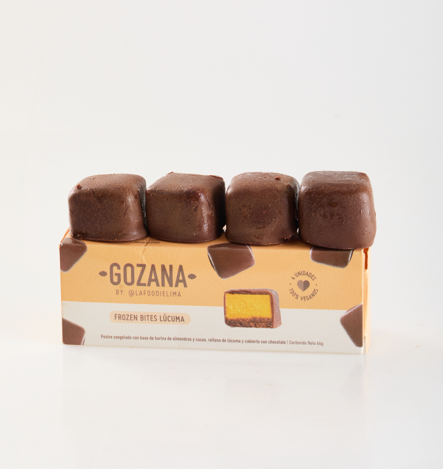 ¡Disfruta de un postre congelado delicioso y nutritivo con nuestros Frozen Bites de Lúcuma! Hechos con lúcuma, una base de raw brownie, y cubiertos de chocolate. Son veganos, libres de gluten, y están hechos solo con los mejores ingredientes naturales.